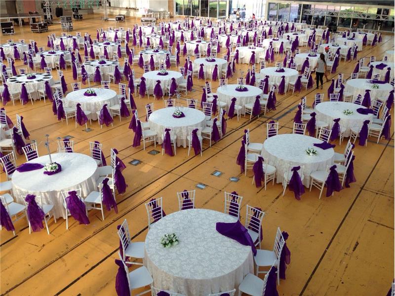 Kullanım Alanları: Düğün salonunda yemek masaları, kokteyl masaları, gelin-damat masası ve oturma alanlarında kullanılır. Ayrıca, dış mekan düğünlerinde tente çadır altında da masa ve sandalye kiralama yaygındır.